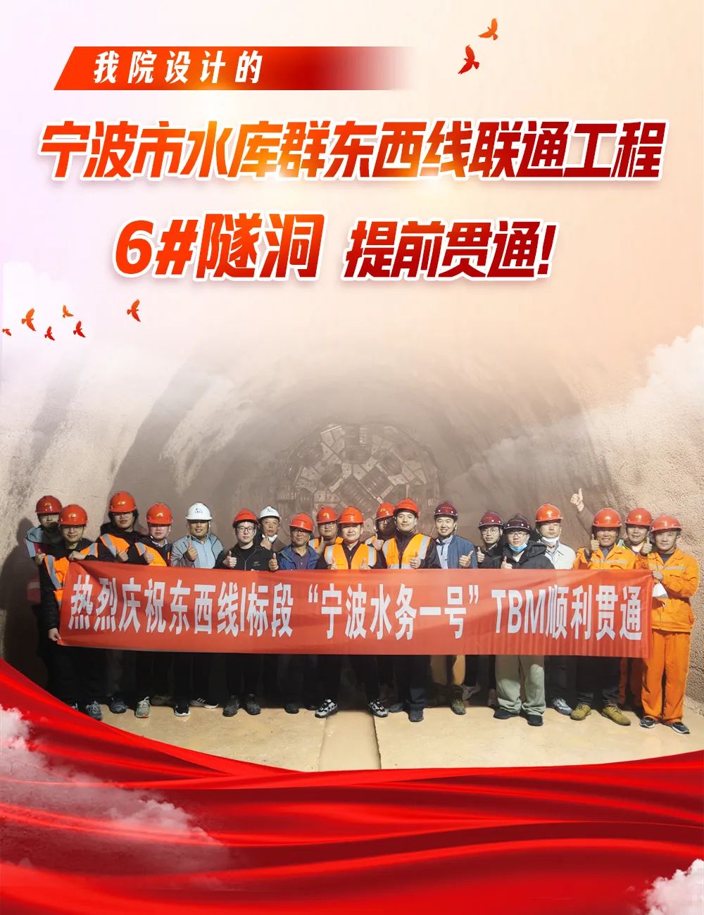 我院設計的寧波市水庫群東西線聯(lián)通工程6#隧洞提前貫通!