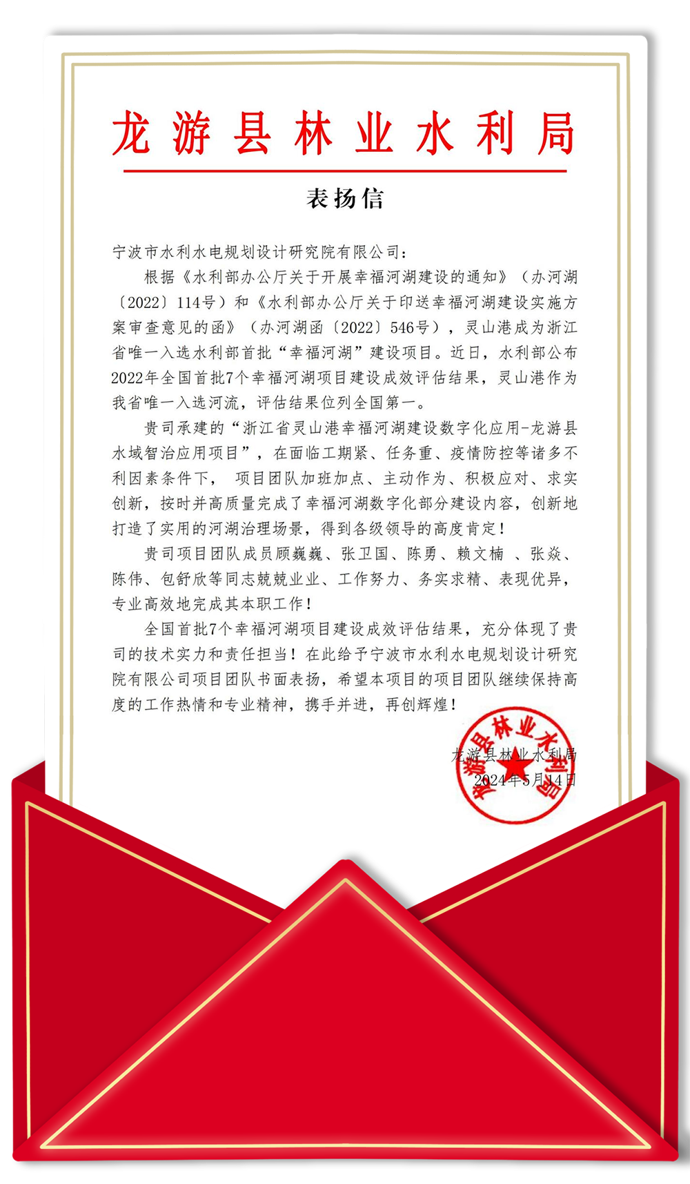為寧波院“智”慧鼓掌!—— 一封來自龍游縣林業(yè)水利局的表揚(yáng)信