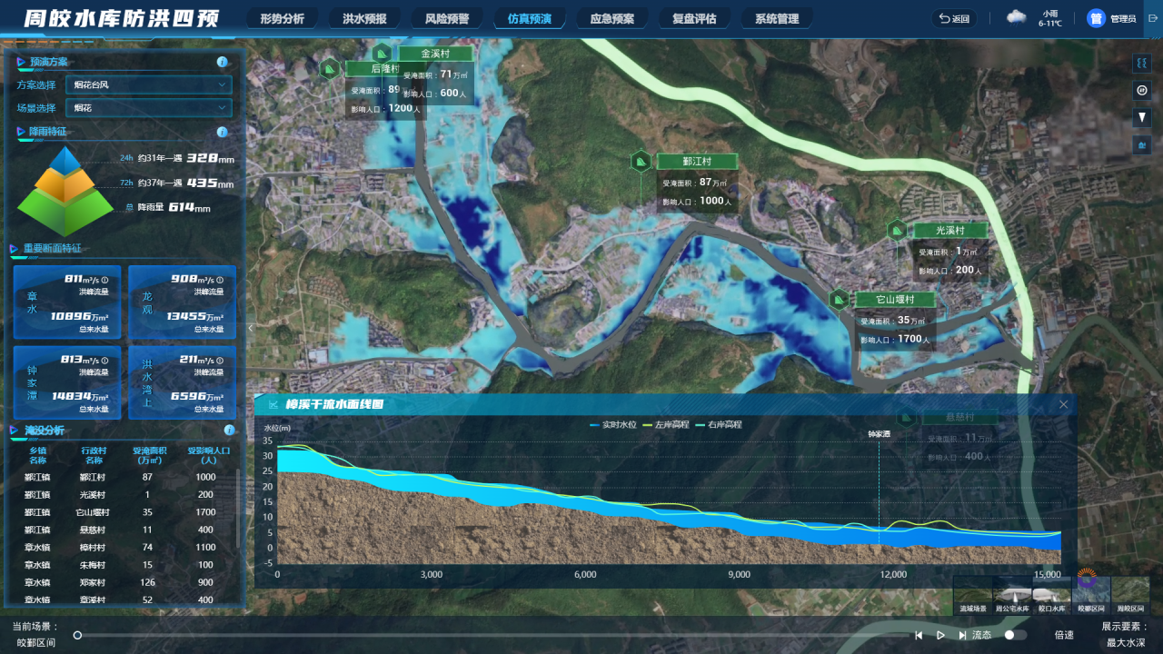 目前,本案例核心成果已在寧波市6座大型和10座重要防洪中型水庫實際應用并取得成效,建設了“寧波市大中型水庫防洪調(diào)度統(tǒng)一管理系統(tǒng)”,助力寧波市水庫管理中型實現(xiàn)全市大中型水庫的防洪調(diào)度統(tǒng)一管理。其中,作為本案例的典型實踐應用,“數(shù)字孿生周公宅-皎口梯級水庫”依托水利部 2022 年“數(shù)字孿生流域建設先行先試工作(2022-2023年)”先行先試試點項目開展實施,并成功支撐周公宅和皎口兩座水庫有效應對 2022 年的“軒嵐諾”和“梅花”、2023 年的“杜蘇芮”和“卡努”、2024 年的“貝碧嘉”和“康妮”等多場臺風暴雨的實戰(zhàn)驗證。