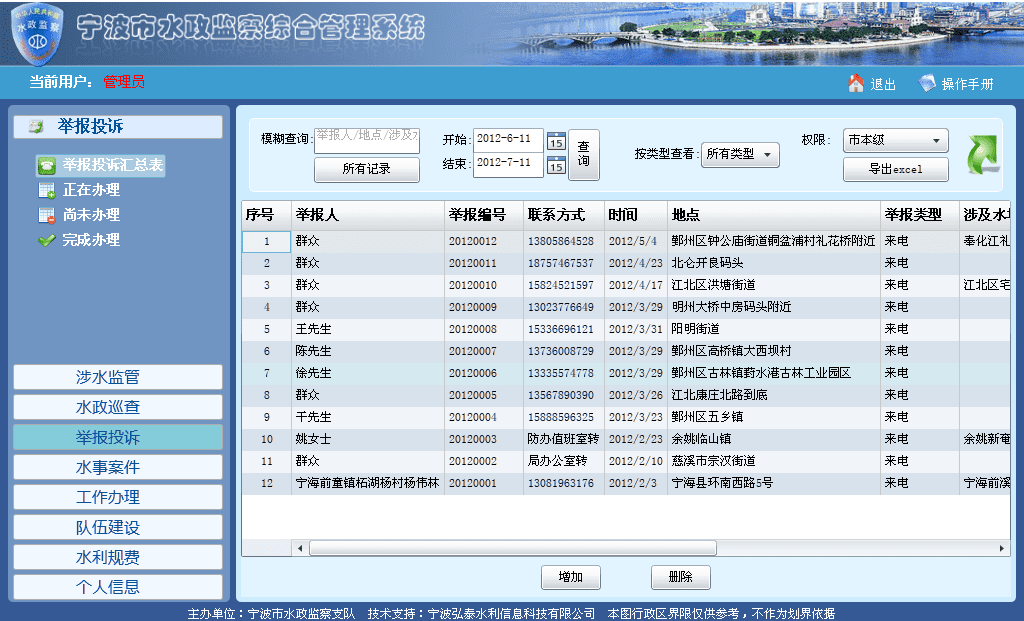 運用當前流行的Javascript和HTML5開發(fā)技術,遵從簡約、適用、高效及專業(yè)的原則,運用優(yōu)秀合理的系統(tǒng)架構(gòu)以及通用化定制化的產(chǎn)品設計模式,著力于水行政執(zhí)法管理的現(xiàn)狀和水政監(jiān)察隊伍的工作需求,開發(fā)水政監(jiān)察綜合管理系統(tǒng),實現(xiàn)水政執(zhí)法工作的信息化與網(wǎng)絡化,實現(xiàn)水政監(jiān)察信息的交換與共享,提高水政執(zhí)法管理水平,提高工作效率與信息的共享程度。